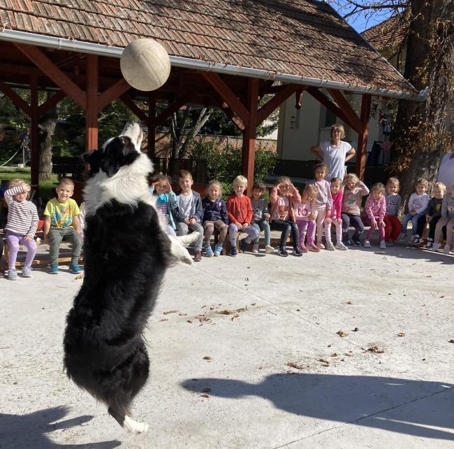 Az Állatok világnapja alkalmából a kisebbeknek is kedvezve, csodálatos állatfajokkal ismerkedhettünk óvodánkban. A gyerekek nagy örömére ismét találkozhattak egy csodálatos társállattal. Blankát a border collie kutyát régi ismerősként üdvözölték, aki szeretetével, játékosságával és ügyességével újra elkápráztatta a gyerekeket.