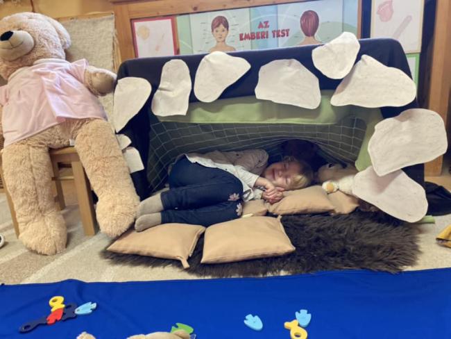 Ezen a héten a Maciké volt a főszerep. Megismerkedtünk tulajdonságaikkal, élőhelyükkel. Építettünk barlangot, festettünk fotófalat, belebújtunk a bőrükbe. Vártuk, vajon meglátja-e az árnyékát, ha kibújik a barlangból?!