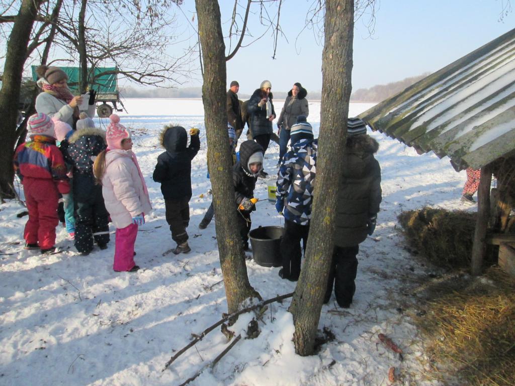 „Zöld óvodaként” szoros kapcsolatban élnek óvodásaink a természeti környezettel, s arra törekszünk, hogy szeressék, ismerjék, óvják környezetük természeti értékeit. Mindezek szellemében tudatosan szervezünk programokat, sétákat, kirándulásokat, így betekinthettünk a a helyi Széchenyi Vadásztársaság téli vadetetésébe. Már az odafelé vezető út is örömmel töltötte el a gyerekeket, hiszen traktorral szállítottak ki bennünket. A gyerekek betekintést nyerhettek az erdei élet mindennapjaiba, az erdész munkájába, s megtudhattuk miért fontos az állatok téli szakszerű etetése. Nagy buzgalommal dolgoztak óvodásaink az etető feltöltésében, s óriási meglepetés volt, amikor elhullatott őz agancsokat is találtak.